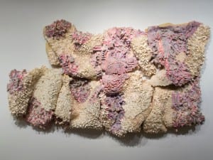 Noriyuki Suzuki’s installation Oh My ( ) is one of the pieces expanding upon changing modes of communication and personalised languages. The work monitors the Twitter feed in real time, sounding out the phrase “oh my (god)” in one of 48 languages every time the word “god” is tweeted. The artwork considers the complexities and intangibility of religion in the digitised world. Daniel Mullen’s painting 37-67 is a representation of synaesthesia; each colour is attached to a certain numerical symbol.