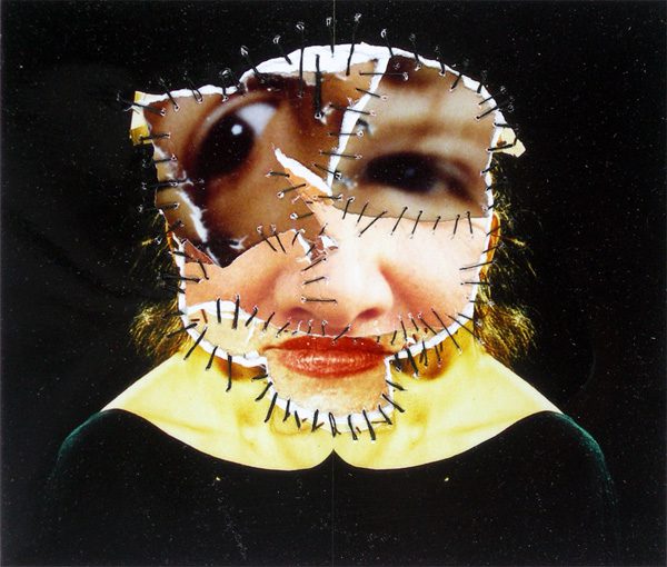 2. retro di “transgenerativ – Mutter/Vater/Tochter/Sohn” (Madre/padre/figlia/figlio), 76, 2005, Fotovernähung / cucitura su fotografia, 66 x 91 cm.