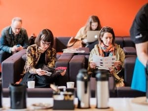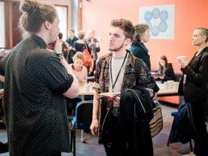 Situated in a relaxed and welcoming setting of the De Grey Foyer, visitors could enjoy a morning refreshment and plan their busy day ahead, getting to know the professionals, practitioners and participants in attendance. An ideal way to kick-start a day of industry sessions, exhibition visits and networking, the session was based in the heart of York St John University campus. Morning Coffee Hour was the perfect place to gather your thoughts, questions and portfolio materials before heading off to the next event. Complimentary coffee, tea and refreshments were available with a symposium pass.