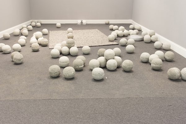 1. Nadim Abbas, ‘Zone (1)‘, (2014), lightweight concrete casts, robotic vacuum cleaner, rug, skirting board, house paint, dimensions variable. Image courtesy Gallery Exit and the Artist.