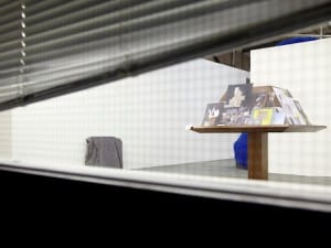 The top floor of Raven Row gallery is divided into two adjacent, small, white spaces. Each room contains two sets of shelves, back-to-back. On the shelves are arranged an assortment of uniform black box-files, labelled with their contents, presented in alphabetical order. A simple instruction on the wall, scrawled in informal purple text, reads “please touch”. The piece, by Babak Ghazi, has been made over the past four years, and is called Lifework (2008-).