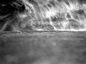 Simon Faithfull’s 25-minute film, Escape Vehicle No 6 also transports us to another plane both literally and metaphorically. We watch the artist release a weather balloon with a chair suspended below. A camera fixed to the balloon films the chair and sends its signal remotely to a receiver. As it rises, the chair lunges, swinging madly in response to the atmospheric pressures and air currents. We watch the earth recede and disappear into a fog bank, we re-emerge into a sun filled region above the clouds. It’s stunning. At 18 miles above the earth the balloon collapses in on its self, the chair works free from its bindings and disappears. The intermittent sounds of a bell toll and static which has accompanied the journey ceases and we are left in silence at the edge of space. The film lends itself to reflection on intellectual aspiration and physical limitation, a new telling of old myths that caution against the hubris of our times.