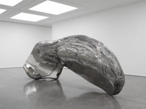 The next scene is quite unexpected. With the stage in complete darkness, we see the outline of an animatronic Polar bear as it arrives onto the stage. Franko B starts to engage with this creature which could represent a childhood friend/a lover/ a father figure, it is hard to tell the symbolic relevance of this empowering beast but the push-pull, tug of war going on seems to represented unrequited love, abandonment and loss. These actions culminated in an embrace between the artist and the bear with a spectacular light show and musical score that forms a wall of sound for the scene. Then there is a return to stillness as the animal stops and the artist reappears with a sledge full of fox heads which he drags across the stage, loosing heads as he makes this steady walk but recovering them by picking as many as he can and embrace in them before leaving the stage and the lights go out.