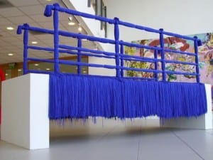 In addition to showcasing his bombastic works, the careful organisation of Four Roads aims to show how Rhoades’ work requires closer engagement as seemingly random and chaotic piles of stuff transform into meaningful, metaphorical and functional systems transform upon reflection. The Creation Myth for example, comprising hundreds of objects – folding banquet tables, buckets, shredded paper, wooden logs, office equipment and furniture, video monitors, a smoke machine – turns out to be a highly constructed model of the artist’s brain at work with sections for the accumulation of knowledge, memory processing and the subconscious.