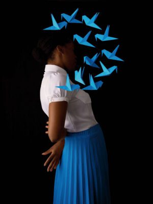 Ingrid Weyland harnesses scrunched-up paper as a metaphor for humanity’s impact on nature, overlaying forest scenes with twisted print-outs.