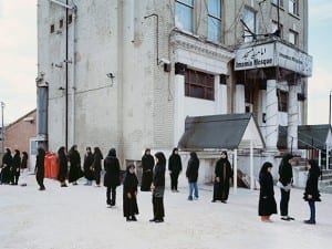 The footage often illustrates the story very directly, showing manual labourers on scaffolding when the narrator mentions workers, bookshelves for a bookshop, a spinning globe for the world. Yet the images constantly surprise us, and not only because of the non-sequiturs in the story as it wanders from street to restaurant to office, from anecdote to reflection to remembrance. Sometimes it is simply the strangeness of the scene: boys imitating birdsong; tiny books with minuscule print; a screenful of blinking eyes; a giant man, towering above everyone else. Sometimes it is the potency of the association: birds caught in the hand flying off into bushes, buds opening slowly, like blooms of arousal. Sometimes it is the unflinching simplicity of the image itself: the shock of a child being beaten, the natural beauty of fern fronds, the matter-of-factness of a man milking a cow, all accompanied by the unobtrusive marvels of Chu-Li Shewring’s soundtrack.