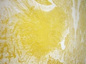 Choucair also made many water sculptures, some of which can be seen at this retrospective exhibition of four rooms. Her in-depth understanding of Islamic culture shows through in these works, as water is the source of all life in Islamic ideology; without water there cannot be life. The most intriguing fact behind all of Choucair’s art is that she has worked with all mediums available to her, brass, terracotta, wood, metal, fiberglass, aluminium, clay and plastic. Having returned to Beirut after a few years in Paris, she witnessed the Lebanese Civil War which started in 1975 and ended in 1990. Most of Choucair’s work reflects the damage of war and the loss of human life, but there is one particular painting that still wears war on itself. Two=One (1947-1951) is pierced by shards of glass from a bombing raid in the Lebanese Civil War. A fragment of glass is still lodged in the canvas and it makes us fall silent with a feeling of past and existing doom. In Choucair’s case, war made her into a prolific artist who comprehends the repetitive nature of infinity as exemplified in her paintings and sculptures.