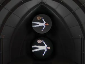 When I refer to neo-modern myth it is largely in relation to the characteristics of science fiction. The show is like a science fiction suspense movie where we anticipate seeing a glimpse of a science-horror being which could manifest as a monster or a god. This is referenced in my video work where the image manifests as many things. We see glimpses of demons, gods, stupid looking sci-fi creatures, a few aliens, cartoon characters, weird machinery and the sublime. I’m interested in our points of reference for these images – where they come from and why.