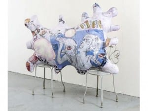 Works are loosely grouped, but not limited to further lines of enquiry; documentation and re-enactment of performances; sculptures as performative objects; appropriation as performance and new information economies after the internet. London-based Argentinian artist Amalia Pica’s work Strangers (2008) could just as easily be a ‘sculpture as performative object’ as it is ‘documentation and re-enactment of performance’. Depending on when you visit, Strangers is either a vibrant string of bunting hung over the gallery entrance or a tableau vivant (living picture) with two actors holding the piece of bunting outstretched in the space. Each time the work is activated, it is done so by two willing participants who have never met each other before, left to negotiate their actions by furtive glances and gestures.