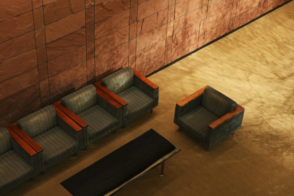 A sleek sense of modernity pervades each image, with carefully crafted lines and choreographed lighting highlighting the expansive buildings and bold colours of the metropolis.