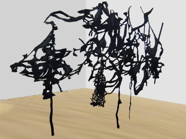 EF: For a while I have been interested in an expanded form of drawing, based on re-constructing languages of two-dimensional artwork. A pared-down definition of drawing could be a mark with a relationship to a ground or surface. In my work, I began thinking: what if the lines, which form my drawing, were removed from the surface, or even constructed from a surface, so that the line and ground merge? Then the space around the drawing becomes the ground for the work.