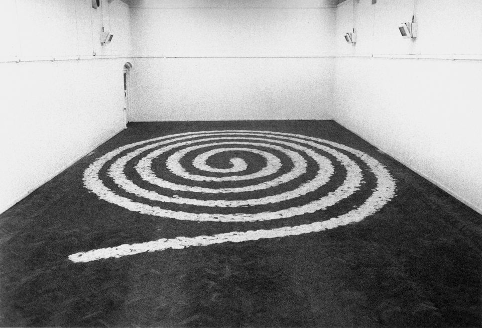 For this piece, Long cast his footsteps in clay and arranged them in a precise spiral on the gallery floor that is equivalent to the number of steps necessary to move from the base of Silbury Hill – the largest prehistoric man-made mound in England – to its peak in a straight ascent. Produced when the artist was only 25 years old, this work was first presented in a solo exhibition at Virginia Dwan Gallery, New York, in 1970. Long has described his process of walking as art as “using the landscape in new ways. Each walk, though not by definition conceptual, realised a particular idea. Thus walking – as art – provided a simple way for me to explore relationships between time, distance, geography and measurement. These walks are recorded in my work in the most appropriate way for each different idea: a photograph, a map or a text work. All these forms feed the imagination.”