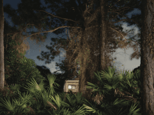 Prestes’ images highlight the feeling of desolation within the landscape – where hazy skies and ominous doorways invite the viewer into a psychological playground.