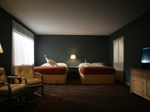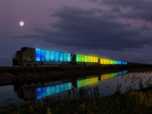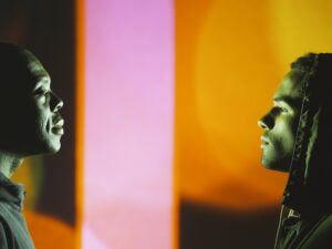 1. Doug Aitken, NEW ERA, (still), 2018. Video installation with three channels of video (color, sound), three projections, freestanding room, PVC projection screens, mirrors. 10:00 minutes/loop, Installation dimensions variable. Image © Doug Aitken, courtesy 303 Gallery, New York.