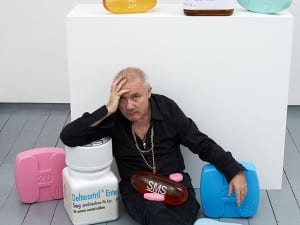 One of the most interesting aspects of the exhibition is the way in which artists working with electric light have called into question what constitutes a sculpture. This is particularly true of the work of British-born artist Anthony McCall, now based in New York, who makes use of a digital film projected through an artificial haze in his work You and I Horizontal from 2005. Projected in a dark room, the use of this haze gives the impression of light having tangibility and volumetric form, like light through dust or smoke. As the title encourages, the viewer is literally able to interact with the light, placing a hand into the haze to disturb the projection or transfer the beam. McCall’s filmic light works question the paradoxical relation to light as a sculptural medium, which he calls attention to by naming an influential series of installations Solid-Light.