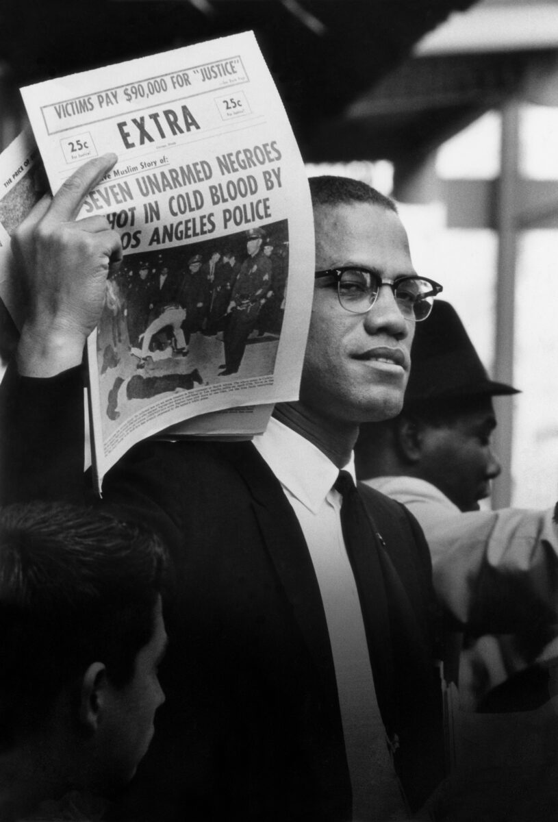 7. Gordon Parks, Malcolm X Holding Up Black Muslim Newspaper, Chicago, Illinois, 1963, Gelatin silver print, 51 x 41 cm.