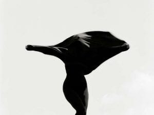 The various ways in which Heck positions the body also connects back to historical painting and portraiture, from Saskia in Comme(2017) much like a study of white-on-white in the canon, to Without A Face (Dior),which evokes a turbaned Vermeer sitter. Elsewhere, poses transport us to the golden age of fashion photography: Floralswith its model’s sloped shoulders and stylised hand-on-hip pose, her long sheath elegantly silhouetted against the white ground, quotes 1950s posturing. Meanwhile, the quiet stillness that reigns in these highly constructed images is disrupted momentarily in a picture of Kristen Owen published in MUSEin 2014, in which the movement of her turning, twisted body is accentuated by the black and white striped pattern of her garment. Through this show, Staley-Wise Gallery, which specialises in the classical and glossy work of “masters of fashion photography,” according to its website, made a point of including Heck in that group.