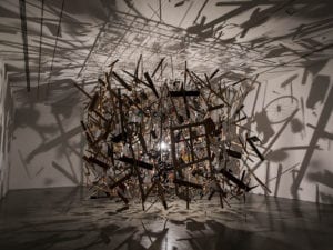 A: With regards to other works on show, for example Fragility (2015), how do you find the relationship between such a monumental structure and the perhaps morbid materials it comes from? Do you see the material as such or does it have more connection to life