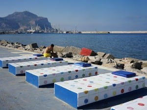 In several close up shots in the video, a man from the Afar territory looks into the camera. As Biggs zooms in his impenetrable gaze summarizes the complexity of her task. Known for their pride, the man’s expression is neither formidable nor approachable. In another scene Biggs films a jovial group of youngsters relaxing together. Here we see a young girl taking the lead and pulling at a hookah with her male compatriots. But in less discernible segments, the artist  juxtaposes dancers from the Elizabeth Streb troupe in New York hurling themselves against a metal barricade. The dancers’ movements are meant to imitate the agitation of young Afar children that she saw during a political event who had been brutally corralled by the police in a van with wire mesh windows.