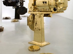 Cibic’s piece, For our Economy and Culture, is a multimedia installation that inhabits the Slovenian Pavilion and evaluates the space to engage with the artist’s representation and reading of Slovenia. Operating within the confines of the A+A Gallery, a “re-purposed private residence” that holds the Slovenian Pavilion each year, Cibic worked with the small, intimate space to develop a project “that didn’t fight the diminutive space but rather worked with it, emphasising its nature”. The architecture of the space itself directly influenced Cibic’s work, and led her to continue the ongoing interrogations of her practice into how governments appropriate architectural spaces to their own ends. “I worked in collaboration with the architect Mateja Šetina to reconstitute the architectural methodologies used by Vinko Glanz. Glanz was the main State architect during Josip Broz Tito’s era in post World War II Yugoslavia. His role was to redesign protocol for official architecture and make it relevant for a new state … Glanz observed local craftsmanship and building materials, and employed national artists to support his work. A trademark of his style, developed out of the Vienna School in 1910, was to utilise marble and wooden cladding but leave walls empty and uncluttered. By employing methods that helped designate the scenography for the new nation state, I wanted to turn the Pavilion itself into a space of state representation. Part of the ‘ornamentation’ involves a selection of flower paintings drawn directly from the Slovenian Parliament’s Official Art Collection. These paintings usually hang in the parliamentary offices and reflect the floral centrepieces that traditionally decorate conference tables.”