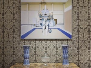 Turning to government documents months after the invasion of Iraq by the United States and the United Kingdom, Holzer has tried to reconstruct the path to war from the language of its architects and executors. Her painted pieces trace the political fallout and human wreckage in the global war on terror, the first series of which use the U.S. Army Criminal Investigation Command’s Gardez Report as source material. The report details the investigation of Afghan prisoner, Jamal Naseer’s death in the custody of U.S. Special Forces. One of eight men made to kneel on the ground while a mixture of snow and water was poured over them, Naseer sustained beating on the back, face, and legs. The descriptions of stark conditions are evoked in the paintings, many of which are painted in whites, blacks, and grays.