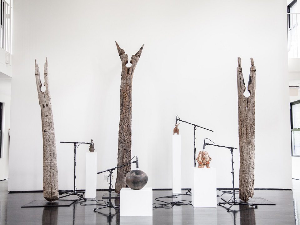 1. Oliver Beer, Tristan Ensemble (2015). Live sound installation based on tuning the harmonics of antiquities from the collection of Robert Wilson. Installation view, Watermill Center, New York. Image © the artist.