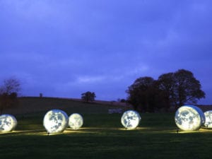 A recent interest is the creation of vessels, often from ceramics, which become idiosyncratic musical instruments as the empty space within resonates in response to a particular musical note, and, when amplified with microphones and sound systems, creates a soundscape of harmonics feeding back – the sound of an absence singing. In Silence Is Golden – a new work for Ikon – among a series of these musical objects are three glass spheres, each holding an actual-size golden model of the tiny bones of the inner ear that make hearing possible, but sealed silently inside crystal.
