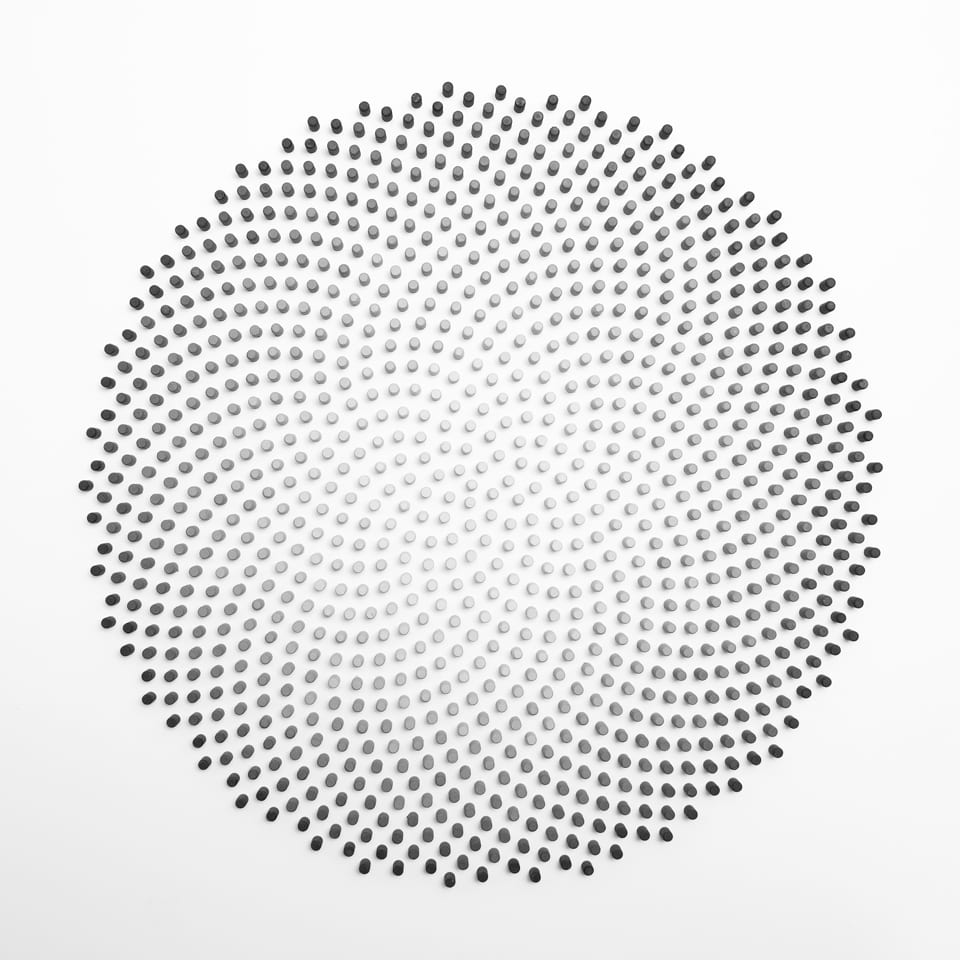 When viewing Vidal’s Untitled from the front, the viewer experiences a painting. When looking at perspective, one experiences depth. The piece is the product of contemplation surrounding nature’s perfection. As one would with a sculpture, the movement in the three-dimensional canvas becomes evident.