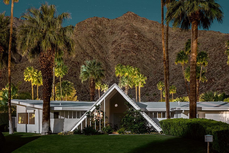 Tom Blachford’s (b. 1987) photography renders functional, man-made structures into strange dreams that fluctuate between reality and fantasy. Based in Melbourne, he practises both ne art and commercial disciplines, sharing his passion for built environments. Featured in the following pages are images from his Midnight Modern (2016) series, depicting classic mid-century buildings cast under a glamorised nightfall. Deserted houses, pools and roads are set against dusky mountains, whilst palm trees protrude from immaculate gravel lawns and spotless driveways. Lighting plays a key element in the compositions, often resembling the artificial shadows of miniature constructions, whilst distant glows offer an uncanny atmosphere to locations devoid of people. Streets are at once animate – basking in moonlight – yet at the same time lacking tell-tale signs of life that would prove the scenes real. www.midnightmodern.com.