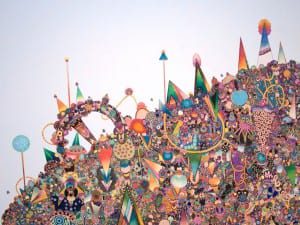 Prager’s subversive narratives tackle the complexity of observation and uniquely, these staged scenes are arranged asymmetrically with close-ups of singular, heavily made-up eyes. The colours are rich and this emphasis on eyes forms a particularly close and distinctive relationship between artist and viewer. We are spectators who are simultaneously being watched. The eyes are there to assist in decoding the scenes, using multiples gazes to derive true meaning in a world awash with observation and surveillance, effectively asking the question as to who is watching who?