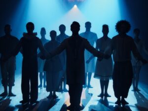 It made sense to me to offer up this project in some ways to help support that other work, and also to build on our working relationship. Meanwhile, in London, being located in the Queen Elizabeth Olympic Park helps to contextualise that relationship. I think of it as a kind of reimagining of a space out of joint. With the blue screen set up, of course, these particular locations won’t always be visible to online audiences. As a third location, the online, telematic space articulates the distance between the two halves of the live performance, even as it connects them together.