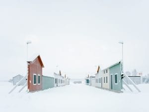 Todd Hido’s series Homes at Night takes a similar approach with very different results. Whereas Steacy’s aesthetic subject is abandonment and neglect, Hido explores domesticity, how humans make their homes and what that means. Titled simply by their house numbers, their four figures seeming as resonant as historical dates, his images of American houses seem at first to reveal an anonymity and monotony – his subjects aren’t architecturally notable in themselves – and yet with sustained looking, subtle variations and individualities emerge, charged with a sense of the private histories of the home’s inhabitants. In 1862, the internal illumination of the building reveals the shadow of an empty leather office chair against slatted jalousie blinds, suggesting night work. As with the work of the painter Edward Hopper, Hido’s work often feels like a stage-set in which something is about to unfold, pitched and pregnant with a sense of anticipation of being offered an opening onto or a handle on a continuum of existence. Hido’s work also articulates a sense of community: his homes at night are not isolated, they are surrounded by other homes, whether we choose to live like that or not.