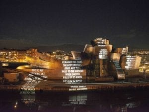 Thing Indescribable is a new survey opening at the Guggenheim Bilbao. The exhibition highlights the breadth of Holzer’s practice, bringing together LED signs, robotics, paintings, works in stone and newly created pieces – including a series of light projections that will occupy the museum’s façade.