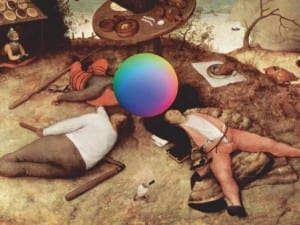 The aesthetic line running through Rotella’s work traces the movement of art history itself. Early works, such as Collage 12 (1954) and Levigo con macchie (1956) feel like hangovers from abstract expressionism with their impasto mix of colours hastily torn from found posters. Then glimmers of Pop art begin to emerge in Divertiamoci (1966) and Cavalcata selvaggia (1966), where colour becomes more vibrant and images are foregrounded. The politicised 1970s, along with an increased interested in photography as fine art, appears in Italy in torment (1979), a photographic reproduction the cover of Time magazine. Finally, the death of painting arrives in Blank crepato (1980), an imposing monochrome black sheet roughly pasted over a poster; it has air bubbles and creases which from a distance look like brushstrokes, as if to express the notion that painterly expression is an illusion in the modern age. Rotella, in this sense, was always contemporary.