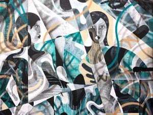 Coagulation (2014) by Florencia Rodriguez Giles, is another work which has little, if any, connection to conventional definitions of abstract art. This enigmatic watercolour, which has the appearance of mystical outsider art, is esoteric in the Argentine tradition of Xul Solar. However, Rodriguez is more firmly rooted in the art world than one might think. The 38-year-old artist has already built up a considerable reputation in her own country, studied in Germany and has received numerous scholarships. Her work does not leave us in any doubt as to why. Though one of the smaller works on display, it is among the most intriguing of the exhibition, exuding a quiet intensity. Figures sit or stand in a dream-like landscape, surrounded by paintings, some on easels and some of which appear to be floating. Gentle pastel-hued mountains rise behind these peculiar figures.