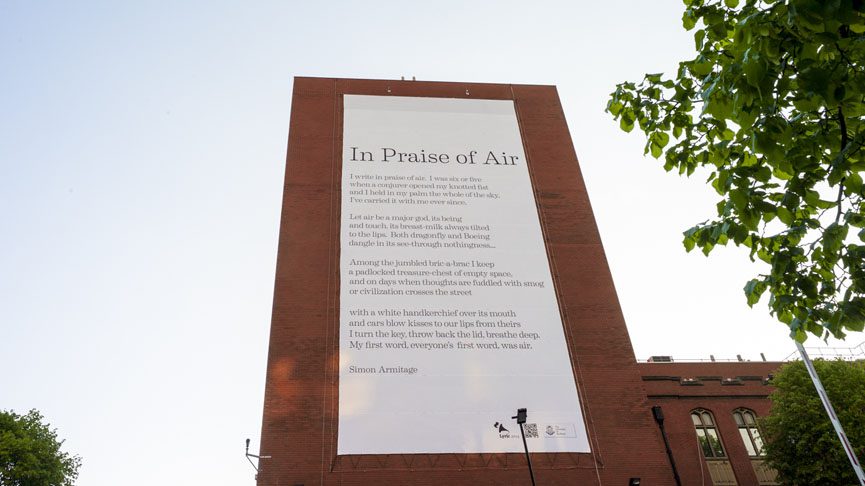 It is rare that science and literature come together in one exhibition, but the In Praise Of Air exhibit at the Sheffield Town Hall had both. In the UK, particularly in the cities, there is a huge problem with pollution. Researchers at the University of Sheffield have created a material that goes some way to solving that issue. Their creation is a marvel of modern technology. The researchers have sprayed a length of material with electrons. When the material meets the natural environment, they rearrange themselves and begin to break down the pollution in the air, at least that is my weak understanding of the system. As if the material was nothing all too special, the exhibition shows a piece of exceptional poetry from Simon Armitage. “I was six or five / when a conjurer opened my knotted fist / and I held in my palm the whole of the sky / I’ve carried it with me ever since,” reads the breathtaking poem. The words and technology are completely in sync; both in sheer appreciation of air and both attempting to hold onto it in some way.