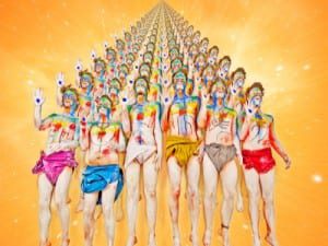 Yet in Hirst’s With Dead Head (1991) at the opposite side of the gallery, a counteractive approach is presented. A lone black and white photograph on the opposite side of the gallery, a young Hirst, then a student, in a Leeds mortuary, stooping down to next to the severed head of a level grinning inanely. The face of the cadaver is permanently crippled into a boisterous scowl, creating a humorously terrifying juxtaposition between life and death dismisses the need for a self-portrait to govern public image – as Hirst once remarked, “we are here for a good time not a long time”. But what is most unique is the cliff-hanger the exhibition ends on, asking the viewer to consider in a century’s time how Koons and Hirst’s legacy will be impacted by these self-portraits as they are exhibited next to living artists.