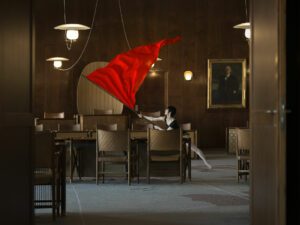 Another artist whose work also relates to the exhibition’s title is James Hankey, whose work reflects on photographic techniques of the past In two rooms, he shows antique photographic equipment and makes an actual dark room to develop photographs of visitors to the exhibition.