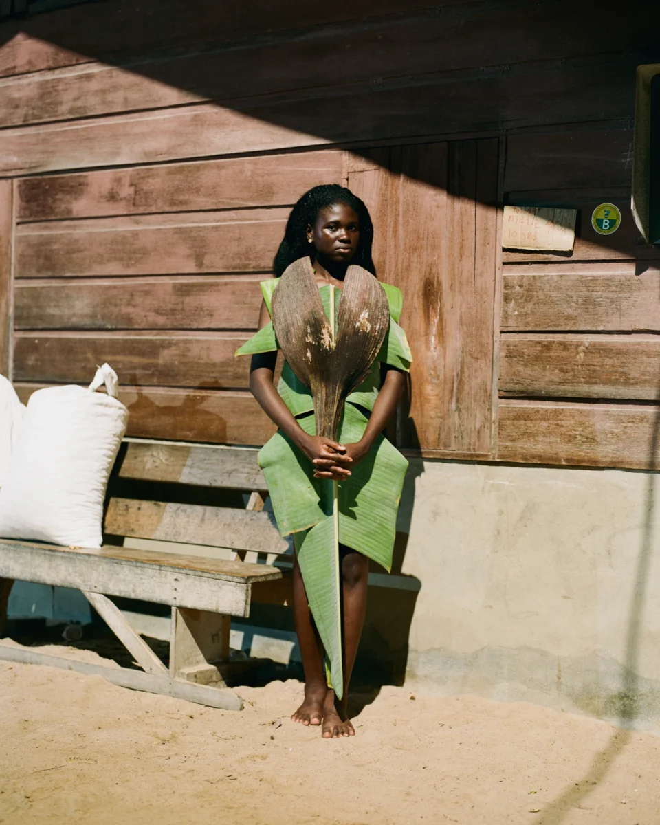 6. IAMISIGO, handwoven raffia-cotton blend look dyed with coffee and mud, Shadows, Spring/Summer 2024. Photograph by Fred Odede. Courtesy of IAMISIGO.