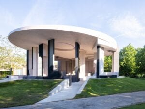 The Forests of Venice, a contemplative wooden space made up of a crisscross or lattice design, curated by Jan Åman, focuses on an ecological approach to architecture. For this piece, which pays tribute to the sustainability of wood as a building material, the Swedish firms Kjellander + Sjöberg and Folkhem have installed a wooden pavilion between the Venice Biennale venues, in tribute to the 10 million trees used to build the city’s foundations. Situated beside a greenhouse from 1894, it is remarkable in its minimalism and its response to the material. However, the architects have also attempted to invert the structure of the Doge’s Palace in a democratic response to inherited political structures.