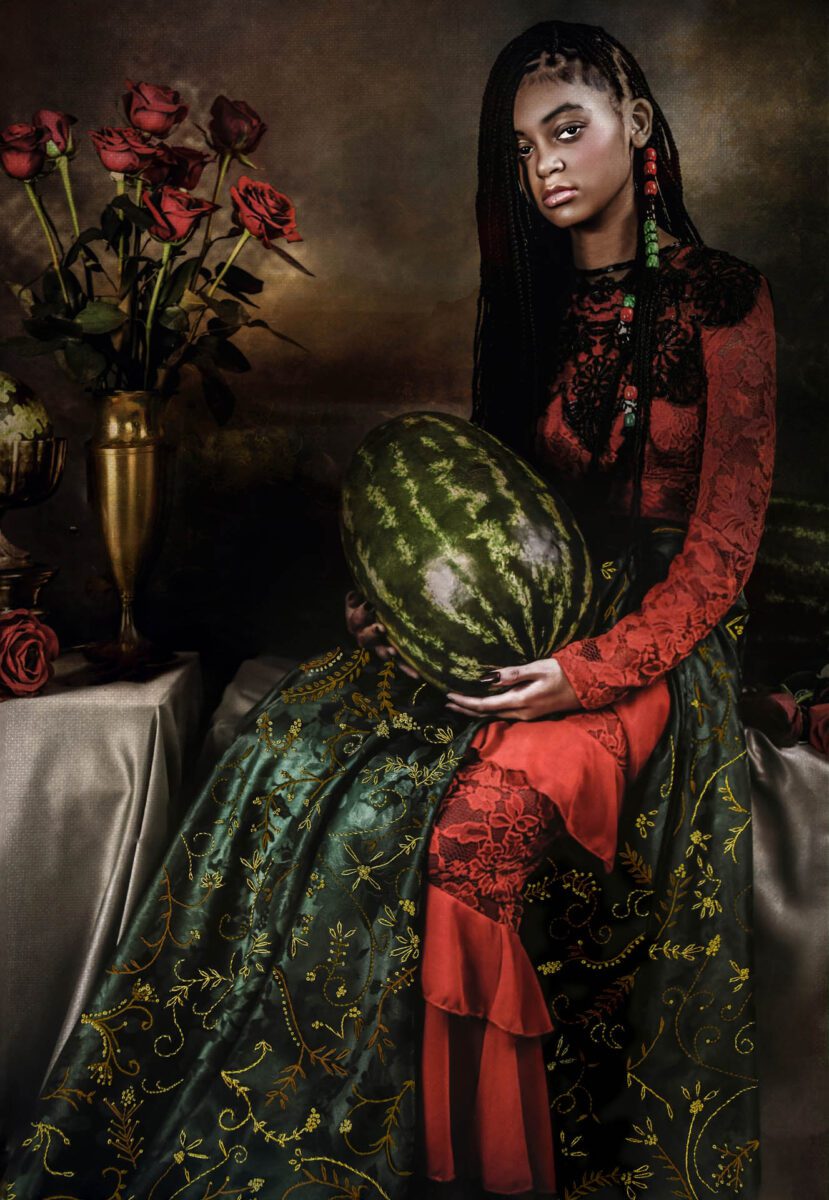 National Museum of Women in the Arts presents richly layered, embroidered and gilded photography-based works by Maryland-based artist Tawny Chatmon. The show debuts works from two key series: The Reconciliation, which addresses stereotypes surrounding the food of the African diaspora, and The Restoration, born from a desire to remove antique racist dolls and figurines from circulation. Central to Chatmon’s work is the reclamation of subjects and stories that have been distorted by racism. She celebrates Black childhood, resistance and self-determination, often using family members as models.