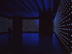 Central to Miyajima’s practice are numerical counters that count from one to nine using light emitting diodes (LEDs). Presented in vast groupings with contrasting speeds and colours, Miyajima’s counters symbolise both the multitude of humanity as well as the individual, with their varied tempos and flashing colours. They also reflect time’s central importance in our lives and draw inspiration from Buddhist philosophy, with its exploration of mortality and human cycles of life, death and renewal.