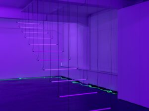 13. Detail, Chances, (2020). Neon, aluminum, enamel paint. 170 x 160 x 10 cm. Photo: Dirk Tacke © ESTATE BRIGITTE KOWANZ / Bildrecht, Vienna 2025.