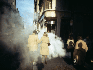 What attracts us to street scenes time and time again? From the photographer’s perspective, it might be the draw of humanity and being able to single out one perfect moment from the chaos. In Bystander, Meyerowitz explains that “it’s like going into the sea and letting the waves break over you. On the street each successive wave brings a whole new cast of characters. There is something exciting about being in the crowd, in all that chance and change – it’s tough in there – but if you can keep paying attention something will reveal itself…” For the viewer, it might be the mystery of seeing strangers frozen in time and place. Who are these people? What were their lives like? These shots inspire us to take notice of the millions of tiny occurrences that happen in our daily lives. Regardless of whether the sights we see are captured forever by the lens, these images serve as reminders that we all have the power to pay attention.