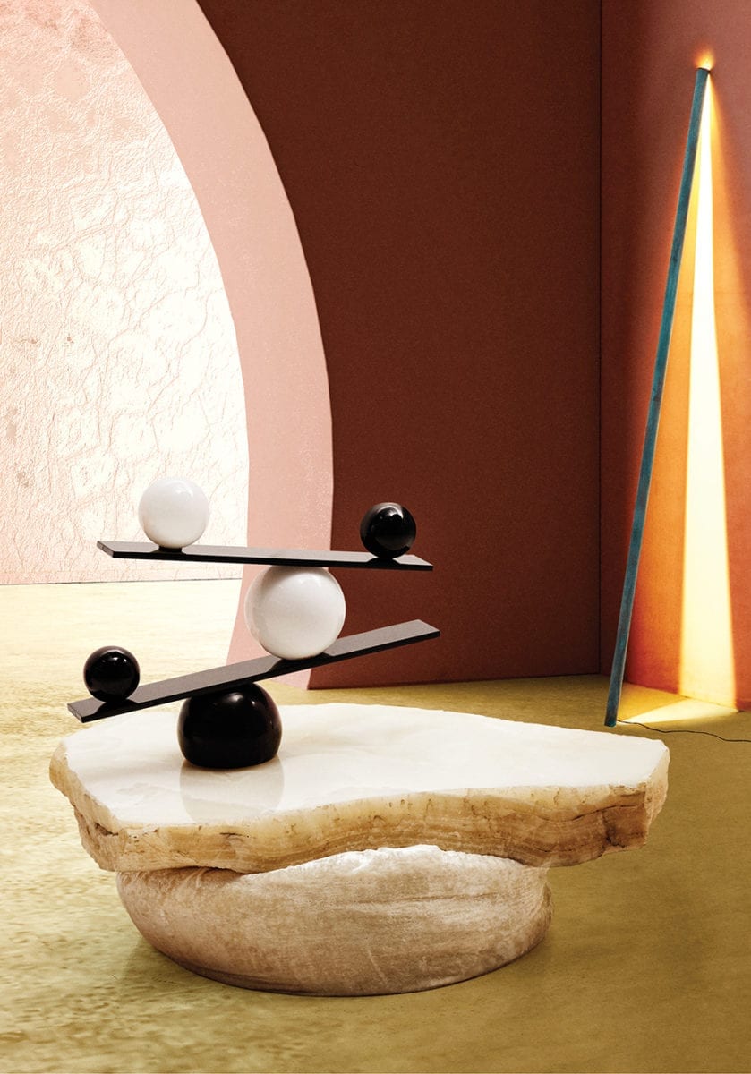 Giorgio de Chirico (1888-1978) was an Italian painter and writer who founded the Metaphysical art movement – a style of painting that typified dream-like views and eerie illogical constructs. Emerging from 19th century Romanticism, the school favoured sharp contrasts, deserted squares and drawn out shadows, with saturated skylines that were both alluring and threatening. Chirico’s disquieting influence can be seen in Studio Enter’s images. Arcades, columns and archways sit against contemporary furniture design, blurring the lines between worlds. The images are at once inviting and unsettling, with open rooms that extend out into an unfamiliar terrain.