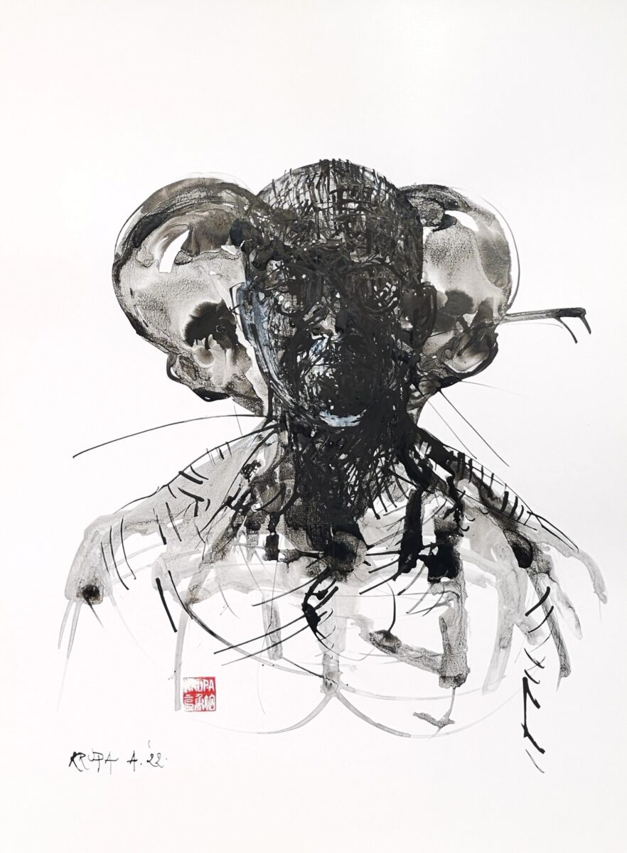 It is not surprising, then, that Krupa’s artistic education and practice is deeply rooted in tradition. He graduated from the Academy of Fine Arts at the University of Zagreb in 1995, before departing for Tokyo Gakugei University in 1998. It was here that his visual language began to flourish, influenced by Japanese minimalist aesthetics and line drawing techniques. His early experimentations with blending these well-established methods with the vibrancy of Western expressionism made him a pioneer of the New Ink Movement, which emerged in the mid-20th century as a response to shifting cultural and artistic landscapes. Artists sought to preserve the essence of classical ink, whilst adapting it to contemporary contexts, allowing traditional art forms to evolve and resonate in the modern world.