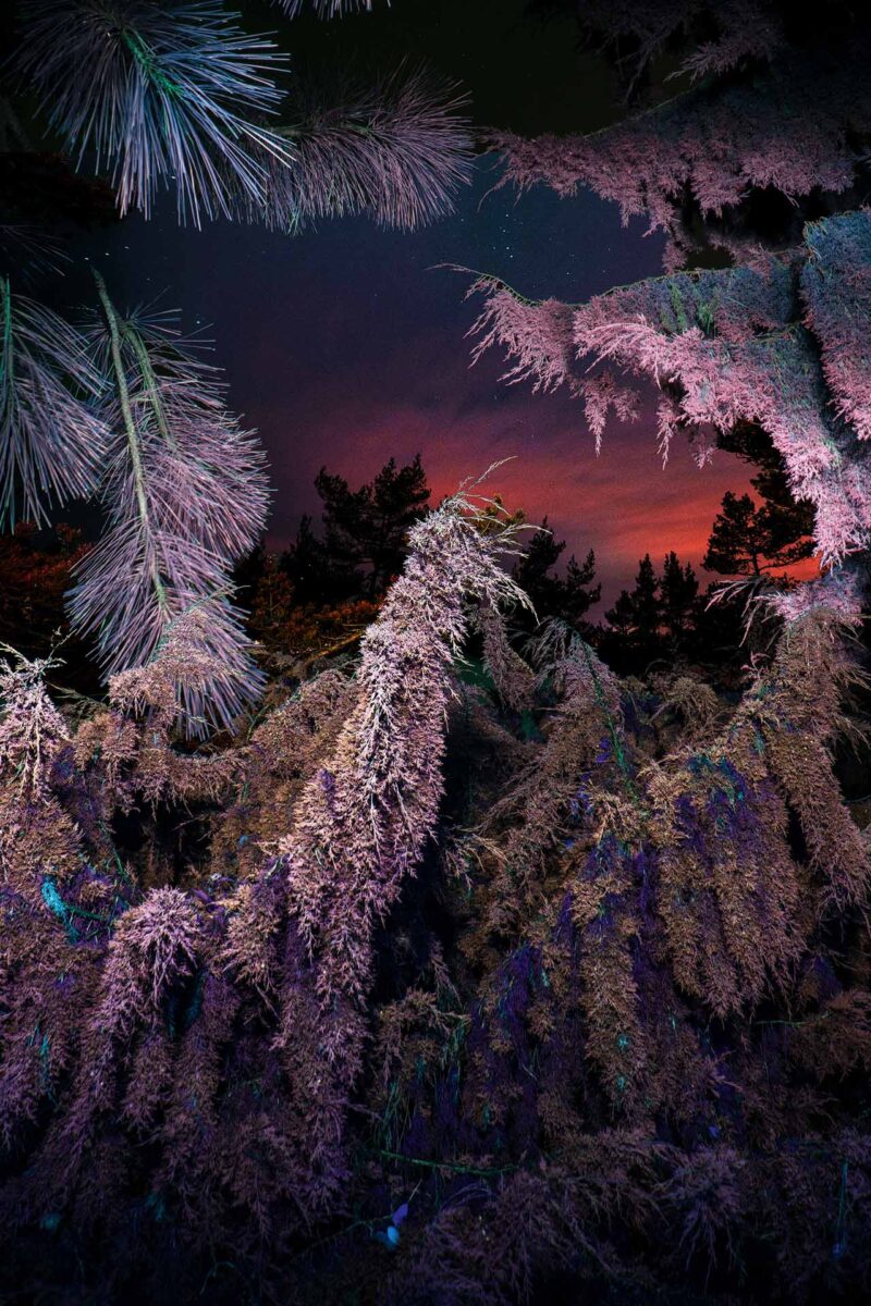 Sculpting with Light | In the Night series, long exposures by Harold Ross depict trees and clearings as bathed in a bright white glow, evoking a sense of mystery.