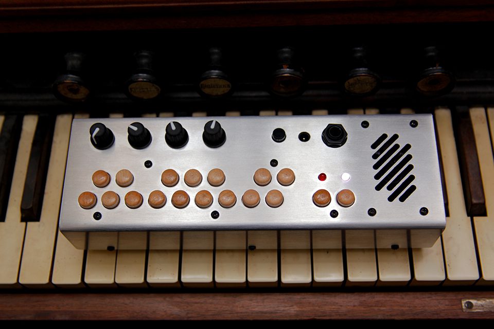 Speaking of woods, he’s enthusiastic about the role of natural materials in its construction. “Wood is a nice material, and in an instrument with a built-in speaker, it resonates in a nice way. There is a little bit of a tradition in including wood in electronic instruments, like in the older Moogs.”