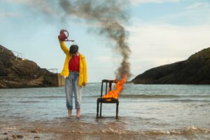 Sigita Silina’s work frequently examines sociocultural conditions. She isolates an individual from the crowd and places them in a calm, cinematic landscape.