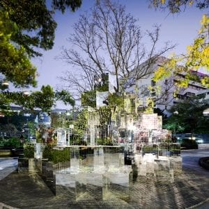 Inspired by ways in which digital and physical cultures merge, A Lower Volume offers an immersive and illusory journey through liquid and light.